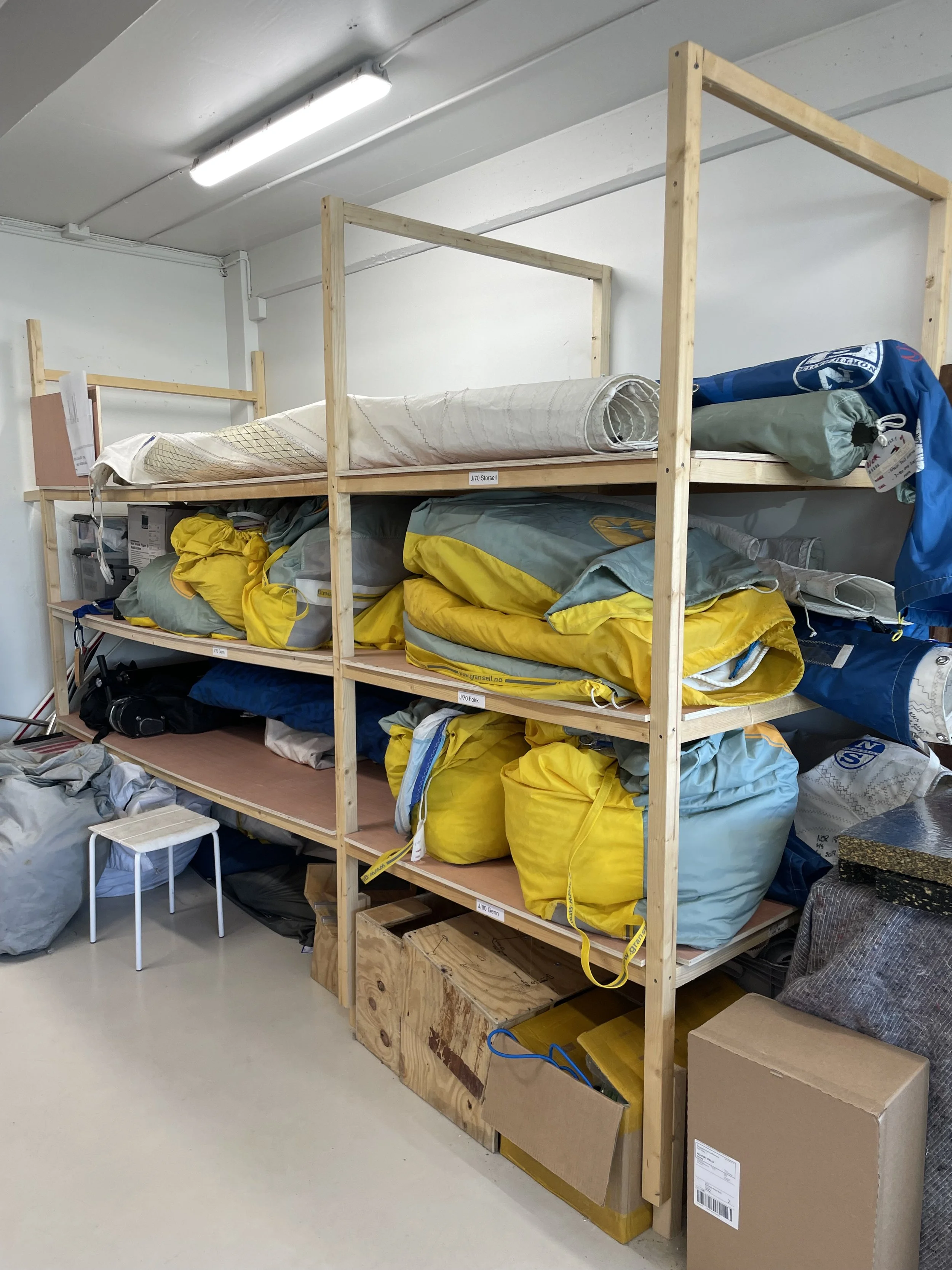 Lageret består (i tillegg til div regattautstyr) av alt av seil og tilhørende utstyr til J/70 og J/80.